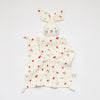 The sweetest bunny security blanket made from 4 layers of super soft GOTS certified organic muslin. With an embroidered heart nose and soft floppy ears this little bunny comforter is destined to be loved!