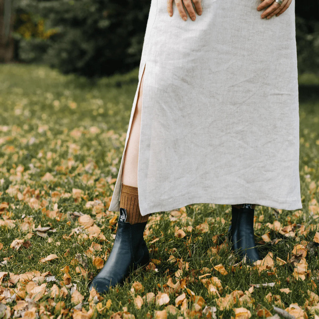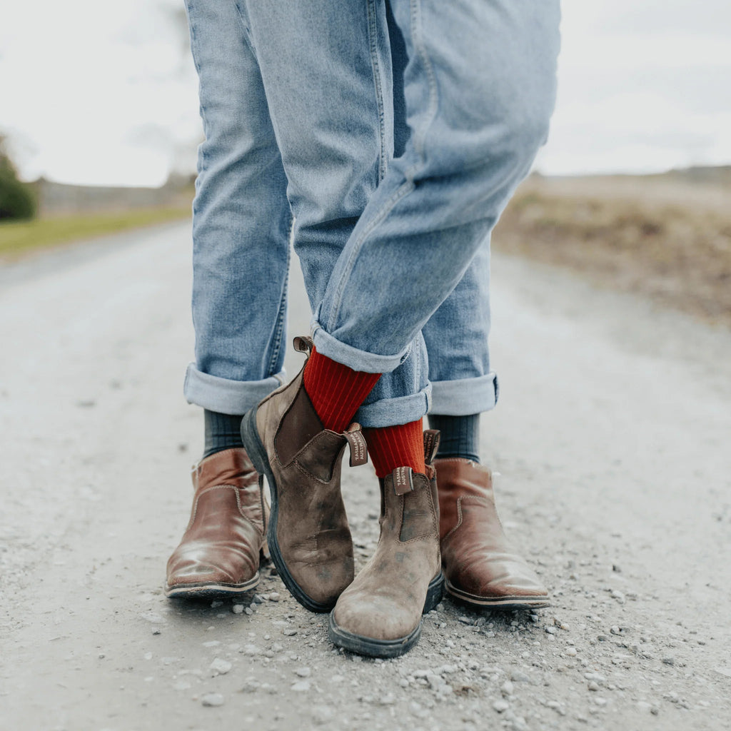 These merino wool ribbed crew socks with a soft cuff are moisture wicking and breathable.
